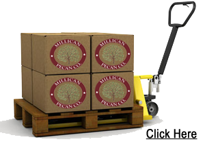 Millican Pecan Company supplies high quality pecans with excellent service and cost effective shipping to meet your needs. Our target areas for wholesale are Ice Cream and Yogurt Shops, Gift and Flower Shops, Bakeries, and the food service industry. If you do not currently use pecans as an ingredient in your products--you're missing out. Not only are they tasty, but the health benefits of pecans are also amazing. As for our candy, the quality and unique flavors from the freshest and finest ingredients cannot be matched. Click on the above image to obtain our wholesale prices. All of our products are available for wholesale.